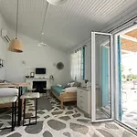 Die am Strand Unique Cycladic Detached House - Private Garden - Juan verfügt über eine Terrasse mit Blick aufs Meer und ist 20 Autominuten vom Flughafen Kalamata entfernt gelegen.